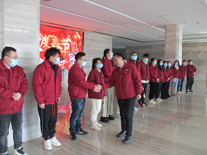 “同志們!給大家拜年了!”“新春快樂!兔年大吉!”上午9時(shí),周敏建一行與各子公司員工互道兔年新春祝福,所到之處笑聲朗朗、祝福聲聲、掌聲連連……。集團(tuán)領(lǐng)導(dǎo)對(duì)各單位過去一年取得的成績給予充分肯定,對(duì)大家立足崗位、辛勤工作的付出表示感謝。