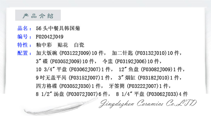 56頭中餐具韓國(guó)菊