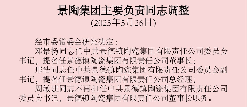 景陶集團主要負責同志調(diào)整