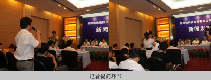 新聞發(fā)布會(huì)上,市人大副主任、市委秘書長(zhǎng)余振泰,市政府副秘書長(zhǎng)、市國(guó)資委黨委主任劉朝陽,市旅游局局長(zhǎng)饒寧生,陶瓷股份公司黨委書記、董事長(zhǎng)王耀、黨委副書記、總經(jīng)理夏躍中等相關(guān)人員就陶瓷股份公司近年來的發(fā)展、公司工業(yè)旅游發(fā)展、實(shí)施品牌戰(zhàn)略等方面回答了與會(huì)新聞媒體記者的提問。