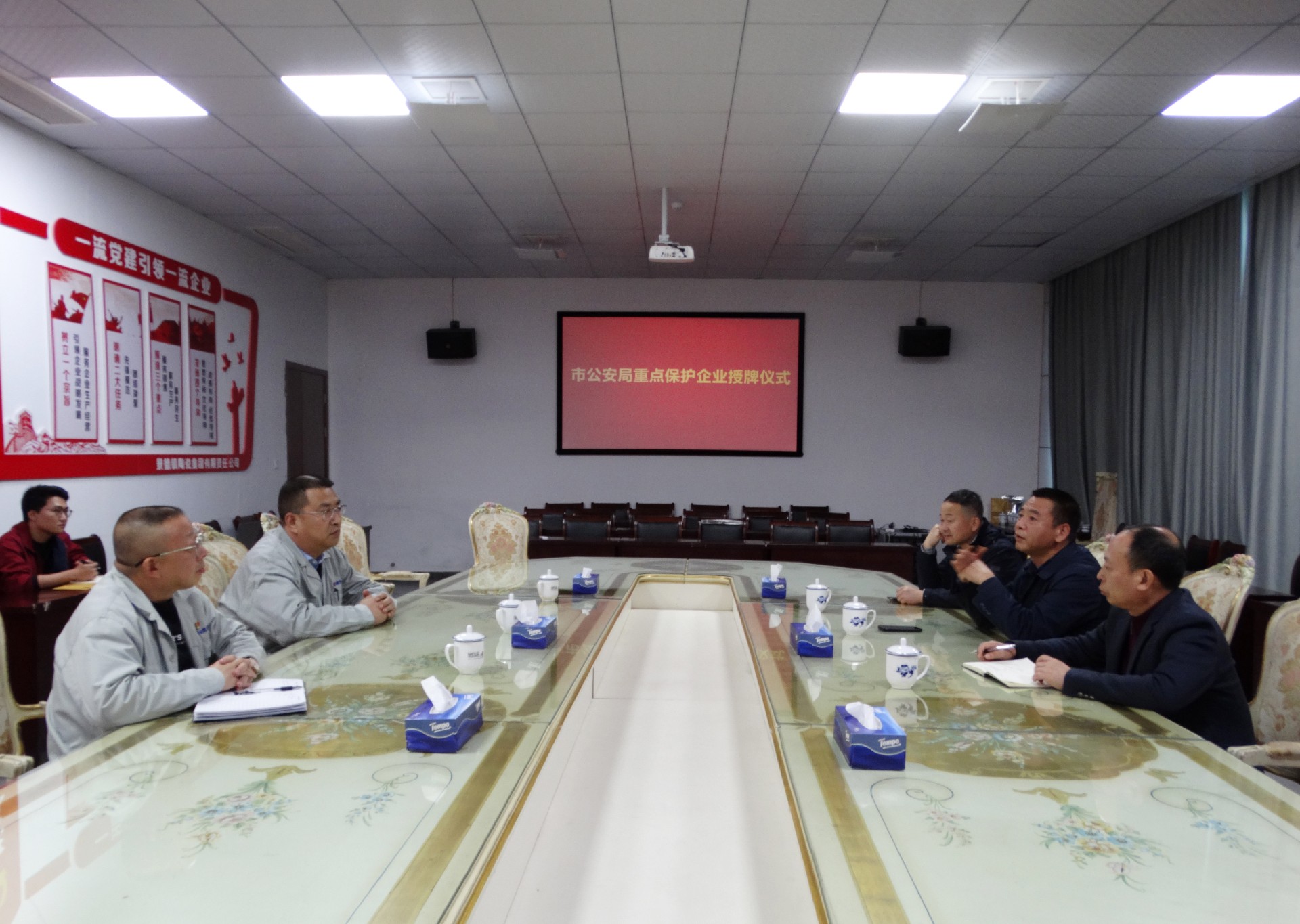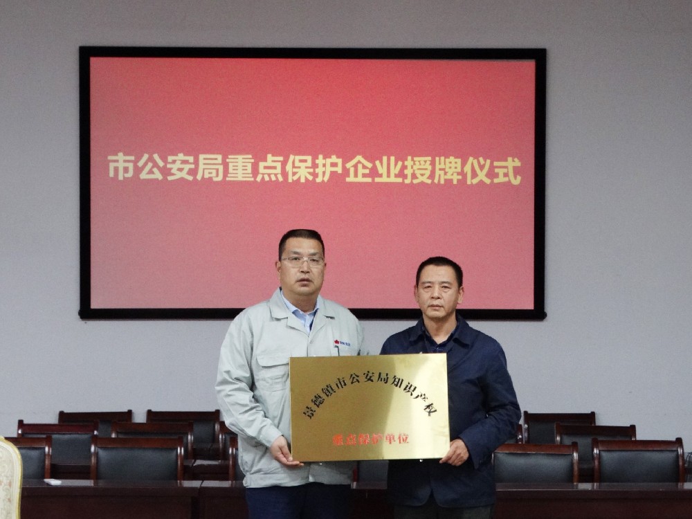 12月1日下午,市公安局在景陶集團(tuán)一樓會議室舉行重點(diǎn)保護(hù)企業(yè)授牌儀式。景德鎮(zhèn)市公安局食藥環(huán)偵查分局局長周興妙,副局長趙敬展,知識產(chǎn)權(quán)大隊(duì)長徐廣志出席授牌儀式。景陶集團(tuán)黨委副書記、總經(jīng)理邢浩,副總經(jīng)理袁建國參加授牌儀式。