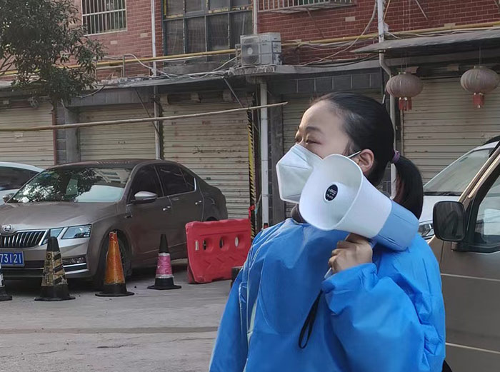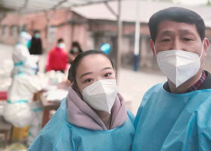 在這場(chǎng)沒有硝煙的戰(zhàn)“疫”中,邵建華與邵燕翎既是父女,更是“戰(zhàn)友”。父親每日在現(xiàn)場(chǎng)維持秩序,女兒每天拿著喇叭挨家挨戶的督促居民下樓做核酸,幫助老年人出示核酸碼等工作。父女倆各盡其責(zé)、互相鼓勵(lì)、并肩作戰(zhàn),用最樸實(shí)的行動(dòng)筑牢疫情防線,他們和大家一樣,希望通過共同努力,早日戰(zhàn)勝這場(chǎng)疫情阻擊戰(zhàn)。
