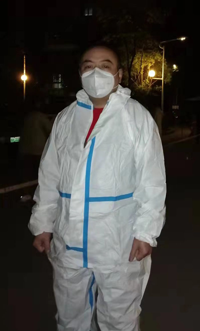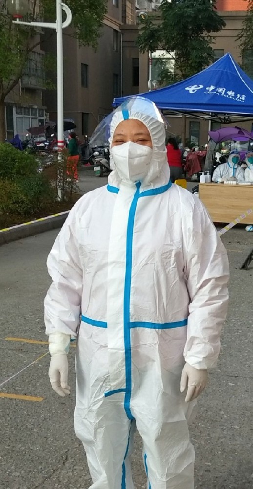 每天早上的鬧鐘固定設在在4:30分,鈴聲想起,夫妻二人便起床洗漱吃早餐,5點就趕到社區(qū)防疫崗位,有條不紊的穿戴好防護服,為全員核酸做好準備。當醫(yī)護人員開始檢測的時候,她們夫婦便在核酸檢測隊伍周圍做好居民引導,維護隊伍秩序,防止人員扎堆和核酸采集后的長時間滯留,每天采集的時間都是五六個小時,她們都會認真負責的堅守到隊伍結束。大半天核酸采集完成,口干舌燥不說,連喝水如廁等生活細節(jié)都要嚴格遵守防疫措施,在核酸采集地維護秩序每天不知不覺也達到兩萬步。